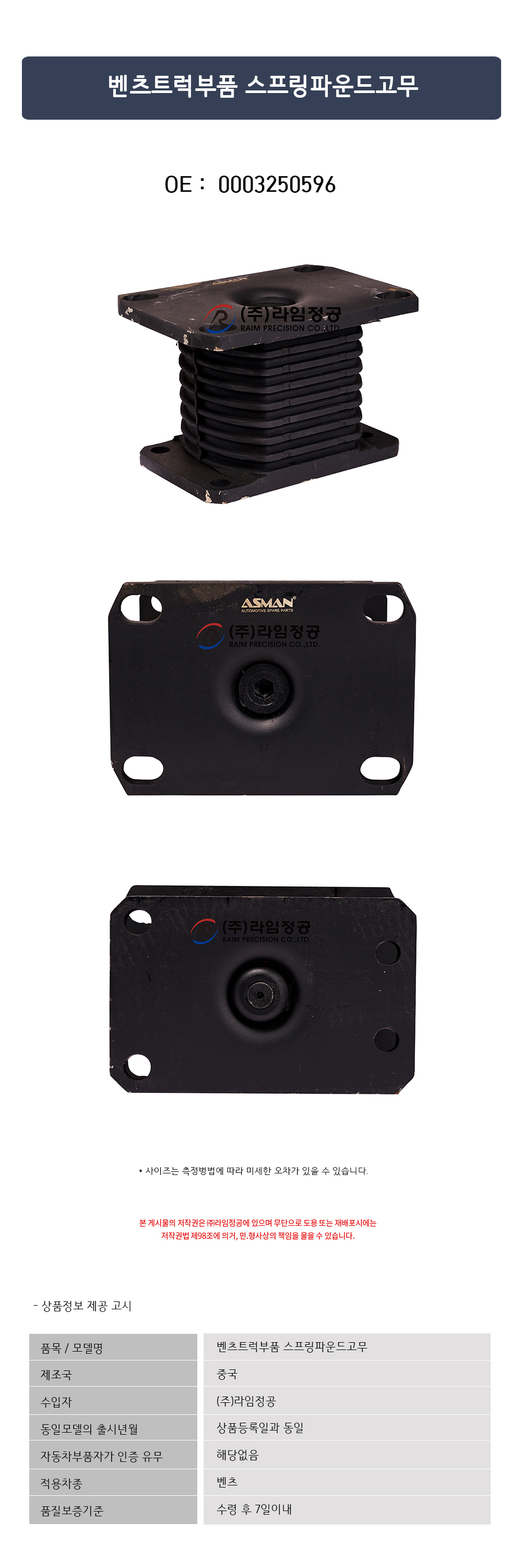 이미지 확대보기벤츠트럭부품 스프링파운드고무 (OE : 3250596)