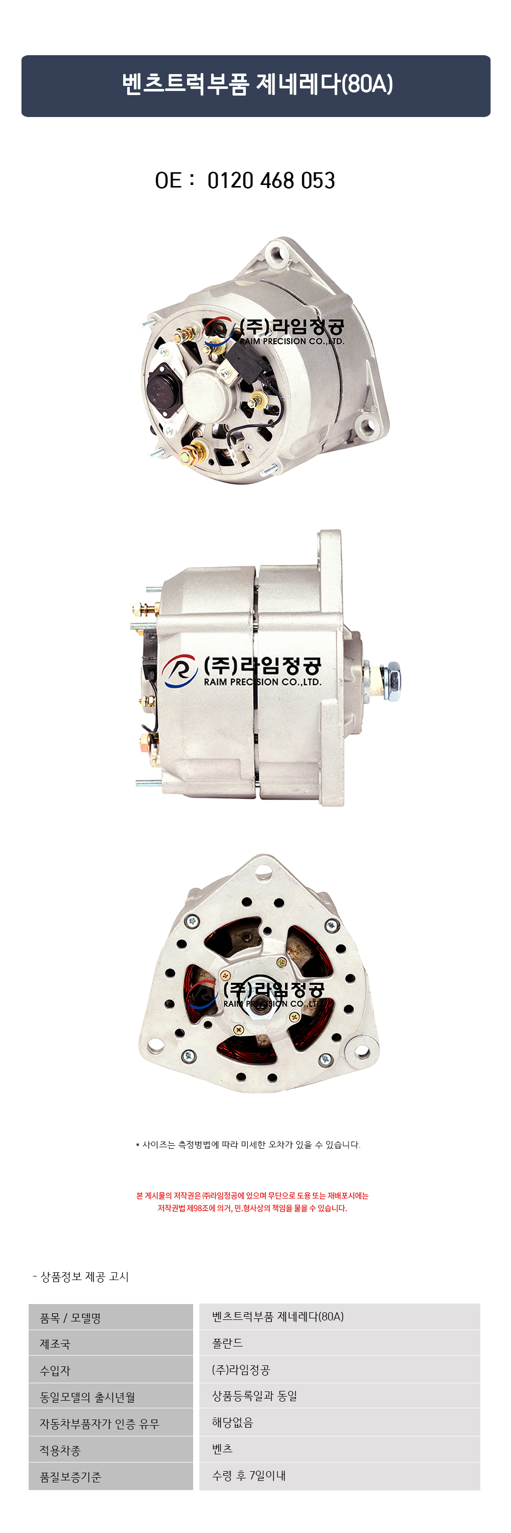 • 벤츠트럭부품 제네레다(80A) (OE : 0120 468 053)