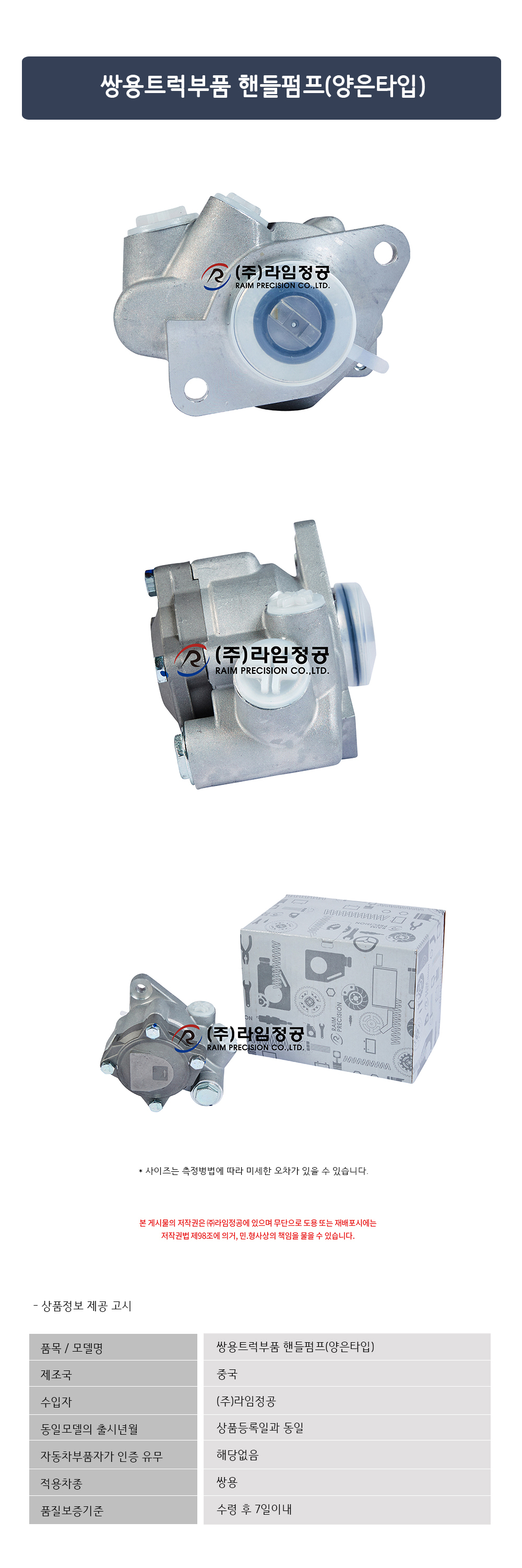 • 쌍용트럭부품 핸들펌프(양은타입)