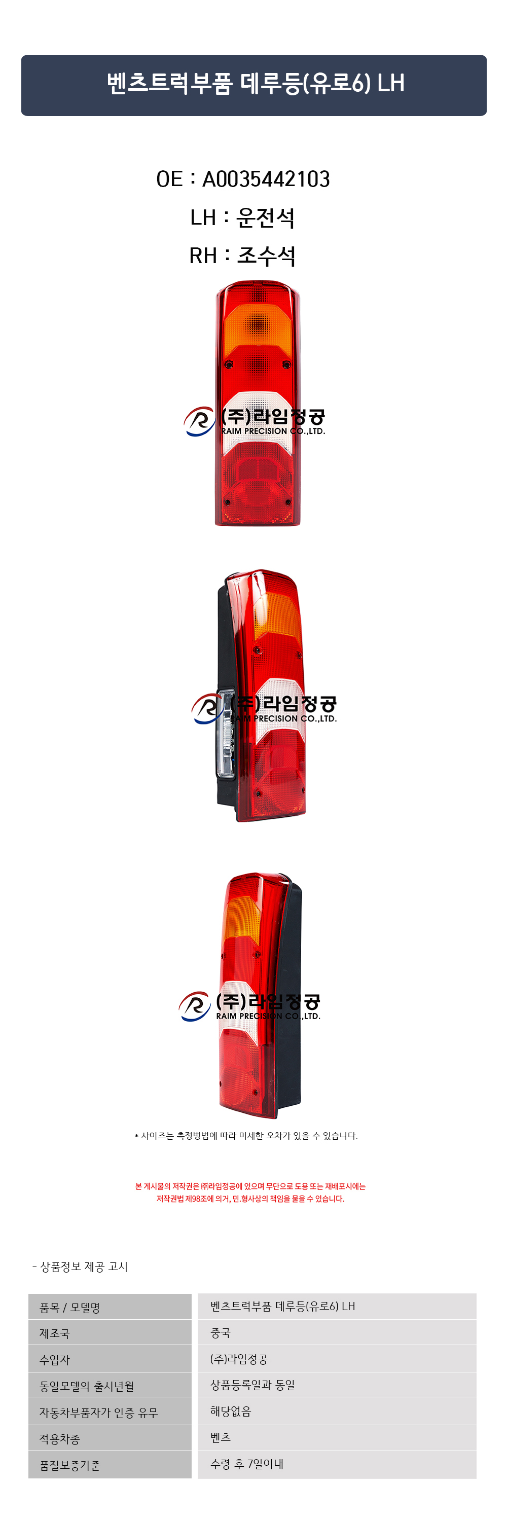 벤츠트럭부품 데루등(유로6) LH (OE : A0035442103)