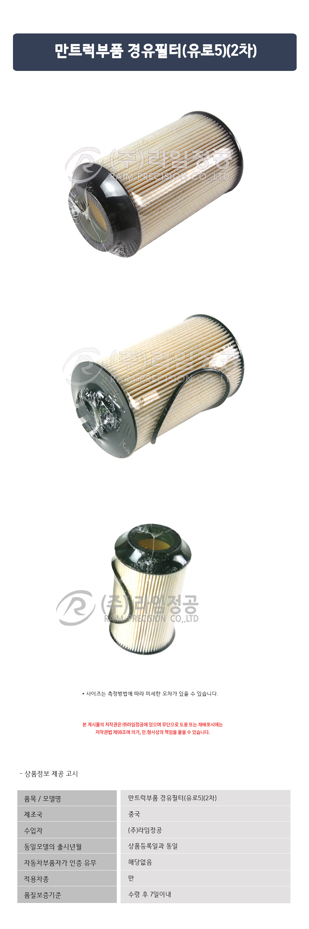 • 만트럭부품 경유필터(유로5)(2차)/라임정공R