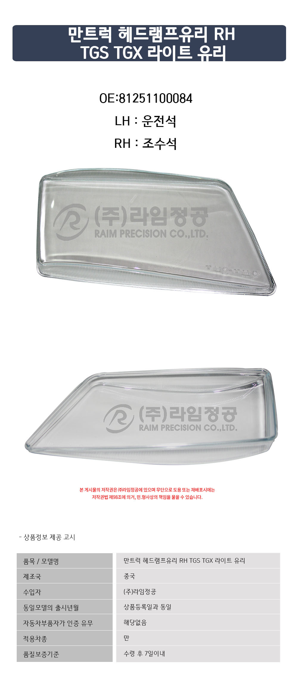 이미지 확대보기만트럭 헤드램프유리 RH TGS TGX 라이트 유리