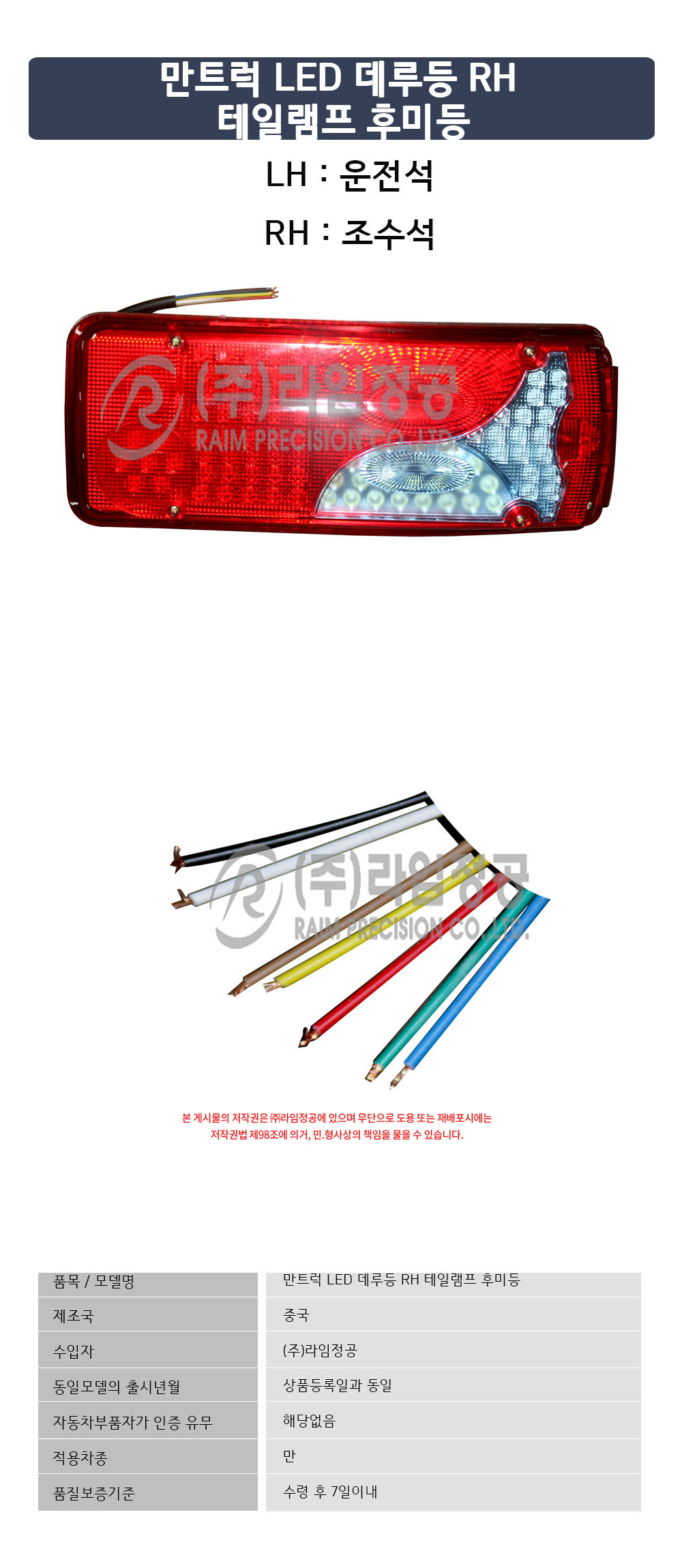 • 만트럭 LED 데루등 RH 테일램프 후미등